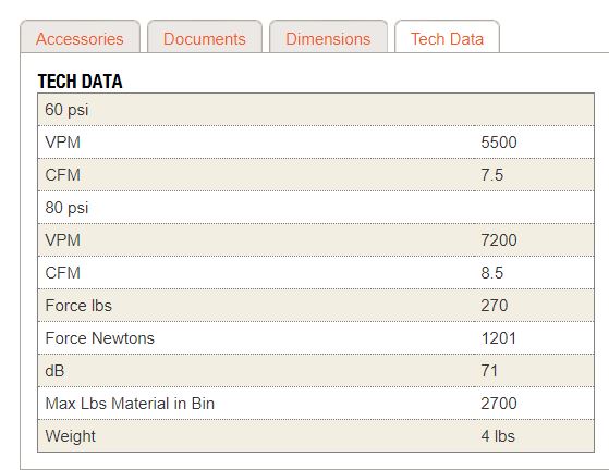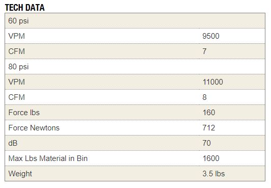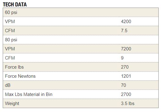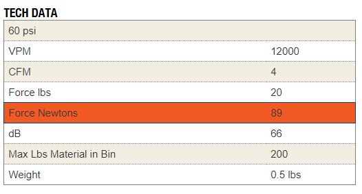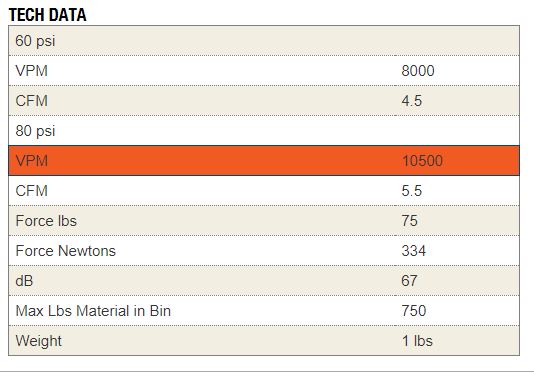 VIBRACIOMES POR MINUTO (VPM) .....12,000 a 60psi